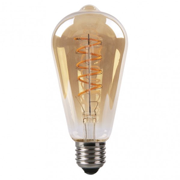 Bombilla pebetero decorativa de la serie VINTAGE DECO de cristal con terminación AMBAR. Casquillo E27 y filamento en espiral en su interior. Se caracteriza por tener 4W de potencia, 250 lúmenes y 2200ºk de color de luz cálida. Tiene unas dimensiones de 14×6,5×6,5 centímetros. De estilo retro vintage o industrial, ideal para lamparas, colgantes, pies de salón, sobremesas y cualquier tipo de iluminación abierta, para todo tipo de ambientes.