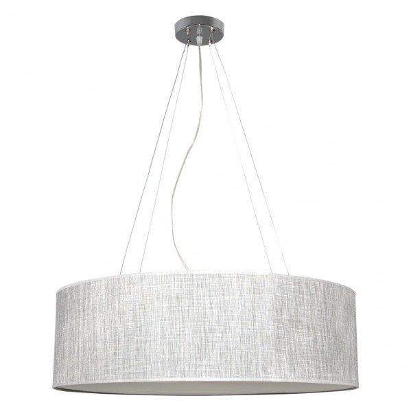 Colgante serie Asunción en color gris. Realizado en material textil. Su diámetro es de 80 cm y su altura regulable. Ideal para salones de gran tamaño. Puede completar la colección con los colgantes de 65, 50 y 40 cm, sobremesa, pie de salón y aplique.
