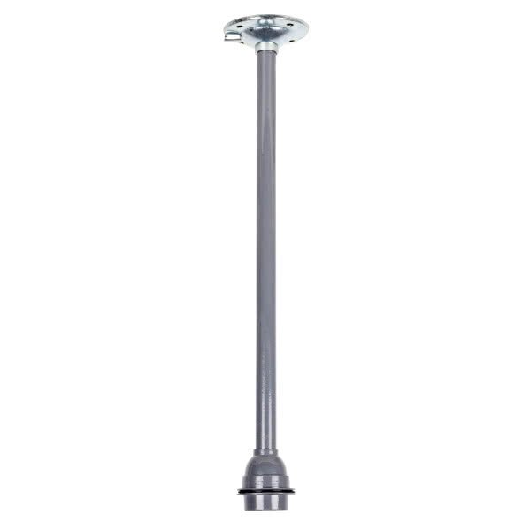 Colgante para campana realizado en metal gris.Tiene unas medidas de 47X8,5X8,5 centímetros y un peso neto de 165 gramos. Preparado con portalámparas E27.