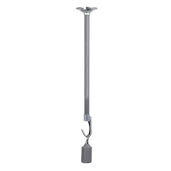 Colgante con gancho para campana realizado en metal gris.Tiene unas medidas de 51X8,5X8,5 centímetros y un peso neto de 165 gramos. Preparado con portalámparas E27.