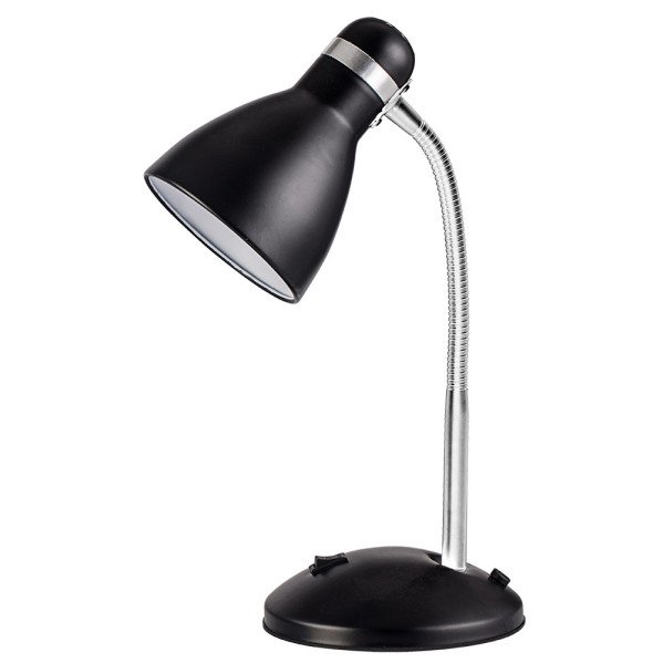 Flexo de la serie LAZULITA de color NEGRO/CROMO. De diseño sencillo realizado en metal con interior de la cabeza en color blanco y detalle en cromado. Con brazo flexible, lo que hace posible orientarlo hacia el punto donde se necesita la luz directa. Posee un portalámparas E27. Bombilla no incluida. Es ideal para pequeños escritorios o mesillas. Modelo también disponible en color rojo, azul, verde, rosa y en blanco.