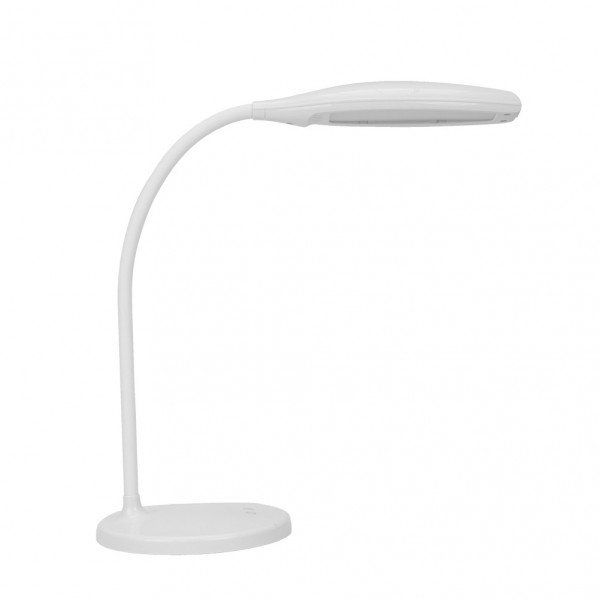 Flexo serie TURMALITA en color BLANCO. Realizado en ABS y policarbonato, flexible y orientable, pudiéndose dirigir su luz dónde desee, de tacto suave. Con tecnología LED INTEGRADO. Tiene una potencia de 7 watios, 560 lúmenes y tres colores regulables de luz, 3000-4000-6500K (luz cálida, blanco neutro y blanco frío). Con un diseño muy moderno y versátil, con regulador de intensidad e interruptor táctil, pudiéndose utilizar tanto en dormitorios como en zonas de trabajo. Sus medidas son de 45x16x35 centímetros, y tiene un peso neto de 655 gramos. Modelo disponible en color azul, rojo y blanco.